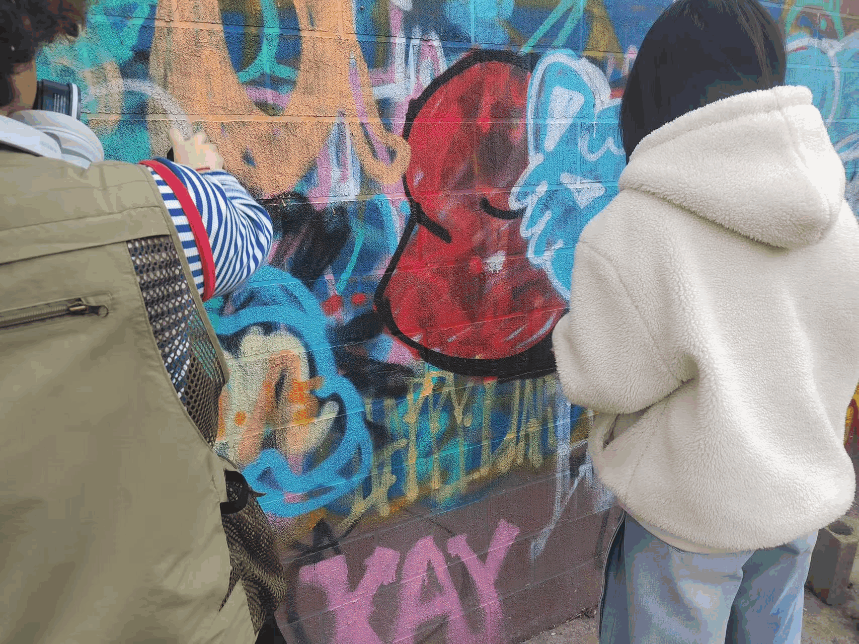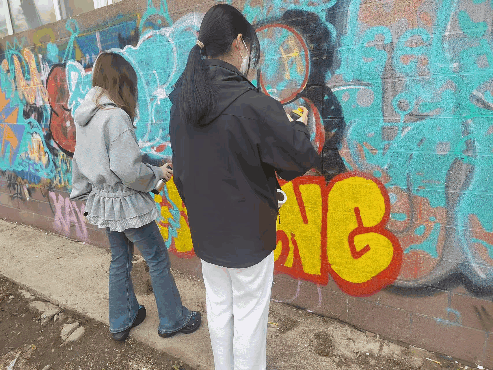 活动开始,社长作为专业指导,就喷漆工具的使用展开系统讲解。从喷漆罐的握持规范、按压操作的精准力度把控,到喷涂时与墙面保持的合理距离及角度选择,社长均进行了细致入微的演示与阐释。社员们围绕四周,全神贯注聆听,以严谨求知的态度汲取专业知识。