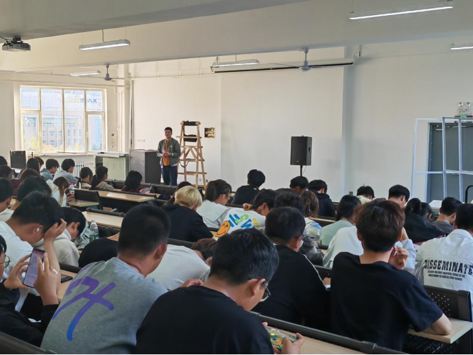 王胤皓着重阐述了不同职业发展路径特点和要求,他凭借专业知识和经验,剖析了传统行业到新兴领域,讲解了稳定职业和创业之路的独特处。通过案例和经验分享,让新生们感受到了机遇与挑战,帮助新生们明确了努力方向,找到了适合道路,规划出了美好蓝图。同时王胤皓希望在大学期间能为同学们提供学术上的指导,祝愿同学们通过学习能够拓宽视野、锻炼能力,勇于追求梦想、实现目标。此外也希望在未来与同学们共同打造和谐、向上、积极的班级氛围。