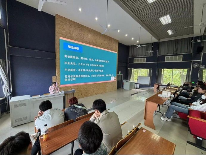 会议最后,宋老师呼吁同学们积极配合学校做好各项毕业离校手续,严格遵守校规校纪,严于律己、宽以待人。她希望同学们能够发扬文明离校的优良传统,争做文明先锋,以实际行动书写精彩人生,为母校争光添彩。