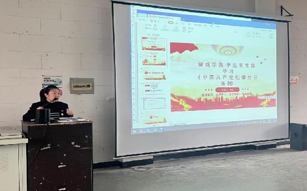 为进一步深入学习宣传贯彻党的二十大精神,深入学习贯彻落实习近平新时代中国特色社会主义思想,继承和发扬党的光荣传统和优良作风,进一步激发广大学生党员的责任感、使命感和荣誉感,贯彻落实“第一议题”学习制度。红黑游戏 学生党支部于2024年3月27日在A522进行了对《中国共产党纪律处分条例》和《发展党员条件》的学习,参加本次学习的有红黑游戏 党支部书记张哲老师及全体在校学生党员、积极分子。