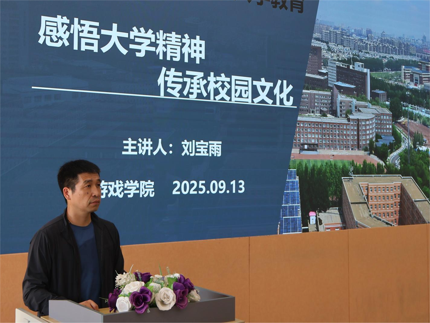 活动在庄严的校歌声中拉开帷幕。新生们首先观看了学校宣传片《征程》,短片全景展现了学校从创立初期到如今发展成为特色鲜明高校的奋斗历程“这是我第一次如此全面地了解学校的历史,”一位新生在观看后感慨,“特别是看到早期师生在艰苦条件下坚持办学的画面,很受触动。”随后,刘宝雨为新生做了专题报告,详细介绍了学院的发展历程和办学特色。