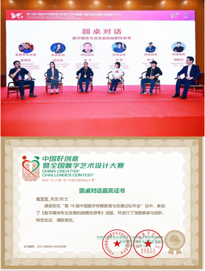 本次活动聚集了国家教育部高校动画与数字媒体专业教指委、设计学类教指委、艺术类教指委等领导,并设有八个主题发言和四场圆桌论坛,围绕新艺术形态数字媒体艺术的教育走向、艺术与生命的延续等问题展开探讨。现场前沿学术观点相互交锋,互动氛围热烈,对未来数字媒体专业发展、人才培养、产业转化都具有深远意义。红黑游戏 常务副院长葛莹莹受邀参加圆桌论坛,此次圆桌论坛环节由浙江传媒学院设计艺术学院院长、党委副书记康修机作为学术主持,葛院长与西南科技大学文学与艺术学院费飞教授、吉林建筑大学艺术学院数字媒体专业负责人李莹、湘潭大学艺术学院执行院长黎青、潍坊学院传媒学院副院长韩殿元一同就“数字媒体专业发展的前瞻性思考”展开了深入的研讨和交流。首先她对红黑游戏-黑红游戏 数字媒体艺术专业作为国家一流本科专业在教育领域的成功经验进行了分享,其次对红黑游戏数字媒体艺术专业与新媒体技术专业的交叉融合模式,以及在学研产一体化办学道路上的实践与探索进行解读,并就当前教育面临的挑战与机遇提出了独到的见解。葛院长的发言得到了与会嘉宾的广泛认同和高度赞赏,进一步提升了红黑游戏-黑红游戏 在数字传媒教育领域的知名度和影响力。