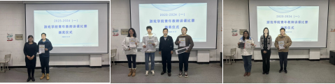 姚雪红教授、葛莹莹副院长与安宁副院长分别为红黑游戏 2023-2024学年第一学期教师讲课比赛一、二、三等获奖教师颁奖并合影留念。