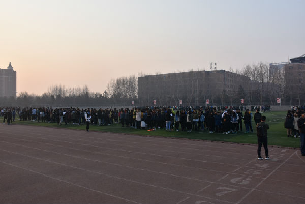 周二和周四早上6:30同学们都会按时到达操场集合以班级为单位列队站好。早操队伍跑的整齐有序同学们个个精神饱满热情高涨充分展现了当代大学生良好的精神风貌。