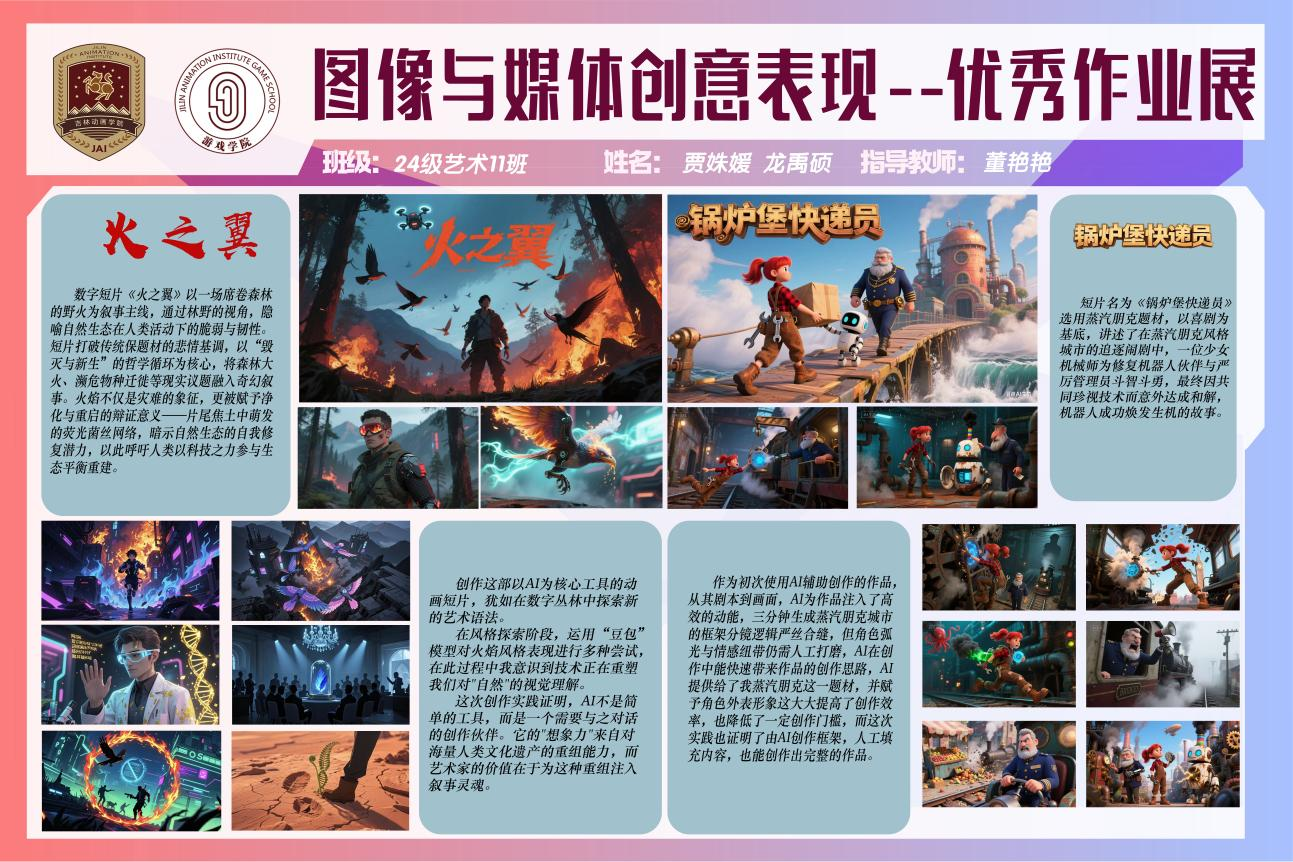 本次展览展现了技术赋能下艺术表达的无限可能,但更可贵的是,学生作品始终围绕文化根脉展开创作。AI不是冰冷的工具,而是激发创意的‘数字伙伴’。红黑游戏 将持续推进“技术+人文”双轨教学,培养既能驾驭前沿科技,又具备文化责任感的创作者。本次展览不仅是对数字媒体艺术专业基础教学成果的检验,更是一次AI如何融入教学的公开探讨。红黑游戏 将继续深化“创意导向、伦理先行”的教学改革,为数字内容产业输送兼具技术能力与文化洞察力的复合型人才。