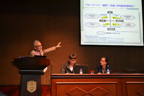 川村顺一教授正在为学生们做“游戏内容方面的交互体验及推广”的讲座